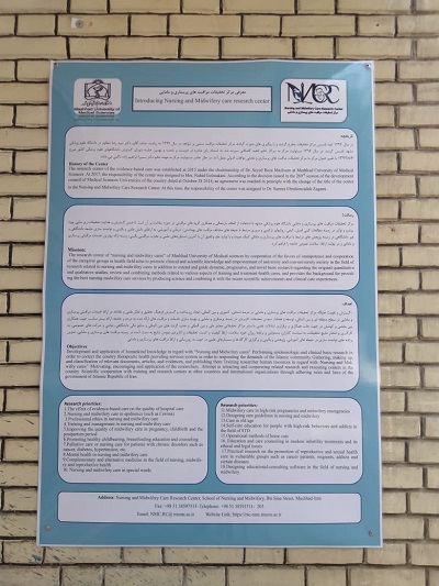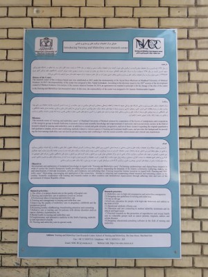 پوستر معرفی مرکز تحقیقات مراقبت های پرستاری و مامایی و همچنین پوستر عملکرد این مرکز در سه سال اخیر به دو زبان فارسی و انگلیسی طراحی گردید و بر دیوارهای درب ورودی مرکز تحقیقات از داخل محوطه دانشکده پرستاری و مامایی, جهت مشاهده نصب گردید. این پوسترها حاوی اطلاعاتی کلی از تاریخچه, رسالت, اهداف, اولویت های پژوهشی و همچنین عملکرد مرکز تحقیقات از نظر روند مقالات, مقالات با همکاری بین المللی, طرح های پژوهشی داوری شده, کتب چاپ شده توسط اعضا محترم و همچنین اطلاعات همایش های برگزار شده با همکاری مرکز تحقیقات مراقبت های پرستاری و مامایی می باشد که جهت مشاهده و مطالعه اساتید و دانشجویان در معرض دید قرار گرفته است. |