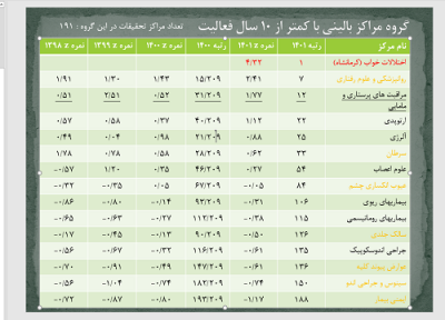بر اساس اعلام معاونت تحقیقات و فناوری وزارت بهداشت، درمان آموزش پزشکی نتایج ارزشیابی فعالیت های پژوهشی 796 مرکز تحقیقاتی وابسته به دانشگاه های علوم پزشکی کشور( دولتی– خصوصی) منتشر شد و مرکز تحقیقات مراقبت های پرستاری و مامایی دانشگاه علوم پزشکی مشهد در گروه مراکز تحقیقات بالینی با فعالیت پژوهشی یک تا ١۰ سال بین 191 مرکز تحقیقات، رتبه 12 و بین مراکز تحقیقات پرستاری و مامایی این رده رتبه دوم کل کشور شد.